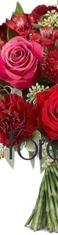 5 x Red Roses, 3 Red Carnations, Red Alstroemeria